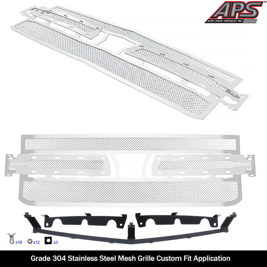 APS GR03GFC75S Main Upper Mesh Grille Fits 2016-2018 Chevy Silverado 1500