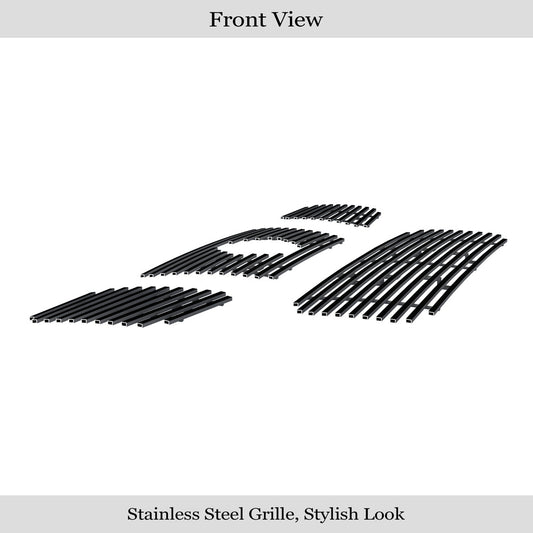 APS GR14FGI66J Main Upper & Lower Bumper Black Stainless Steel Billet Grille Fits 2005-2008 Nissan Frontier