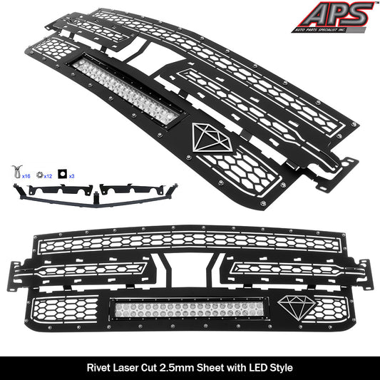 APS GR03LFC33L Main Upper Rivet Grille Fits 2015-2019 Chevy Silverado 2500 HD