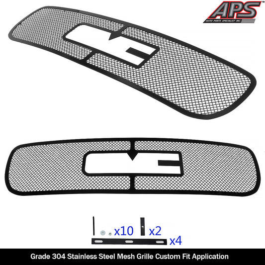 APS GR07GEG71H Main Upper Black Wire Mesh Grille Fits 2003-2006 GMC Sierra 1500