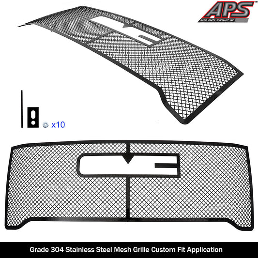 APS GR07GFE70G Top Bumper Black Wire Mesh Grille Fits 2007-2013 GMC Sierra 1500