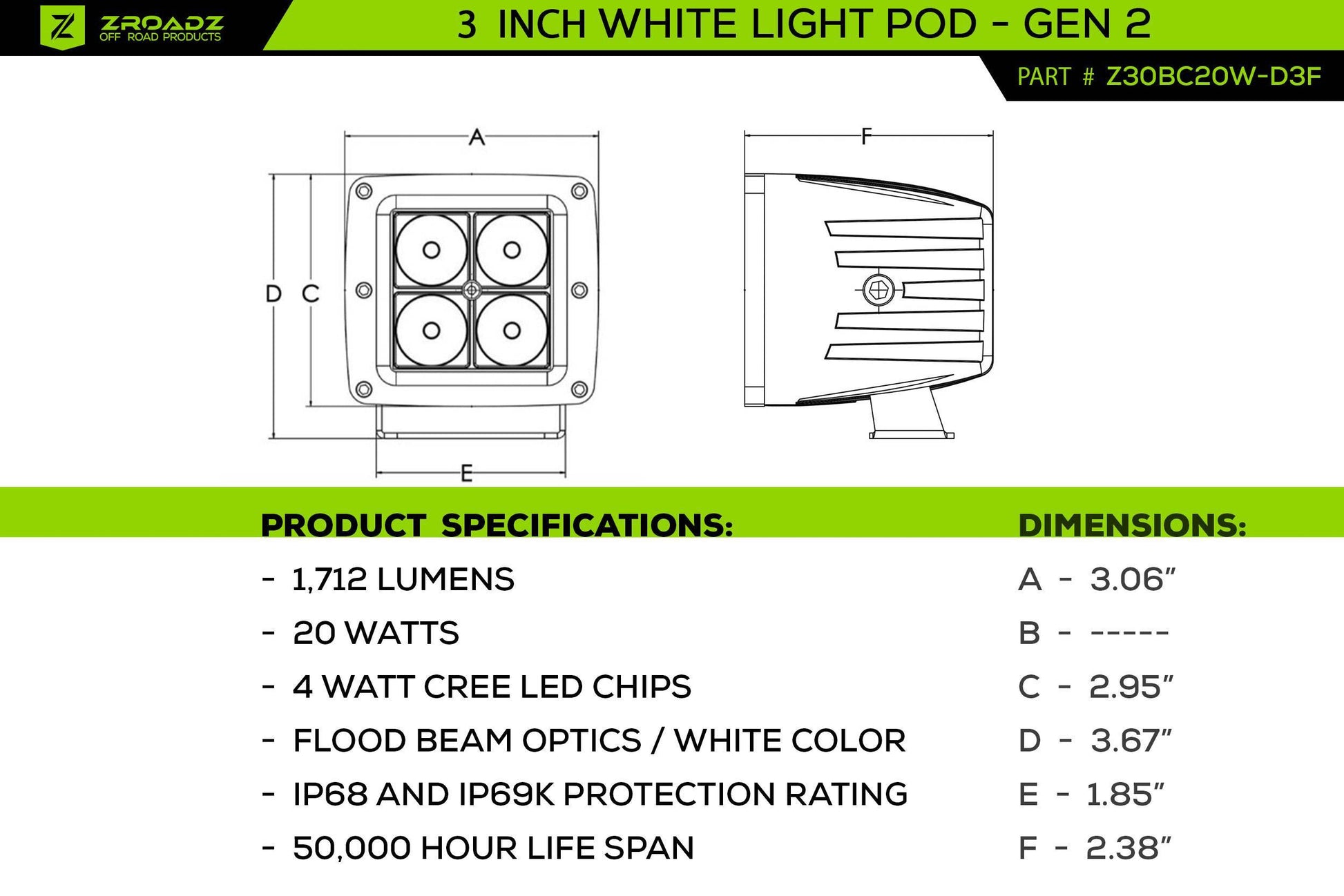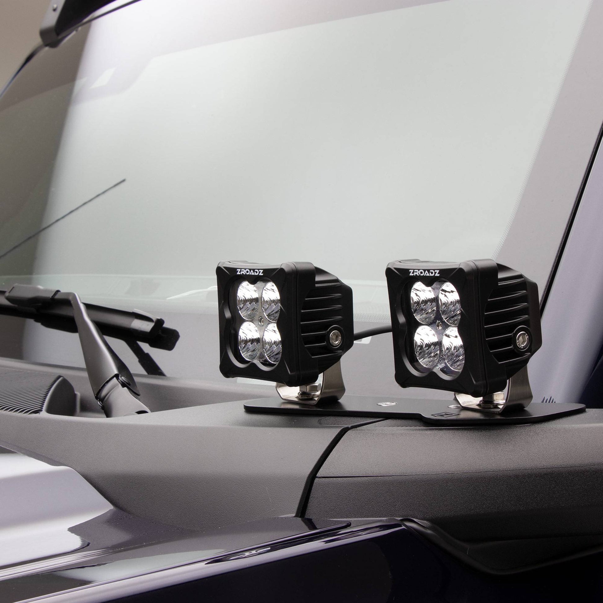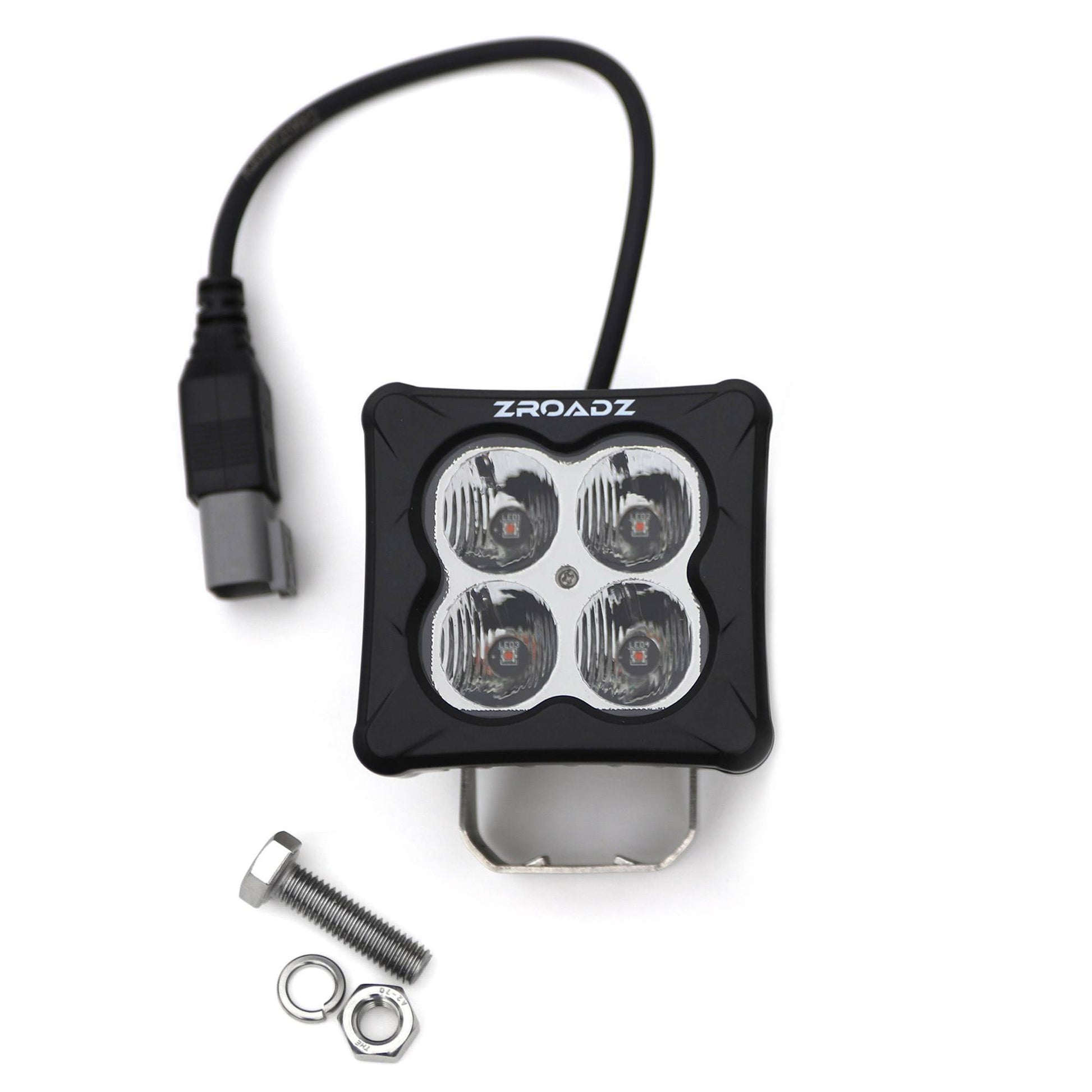 - LED: (2) 3 Inch White ZROADZ LED and (2) 3 Inch Amber ZROADZ LED Pod Lights